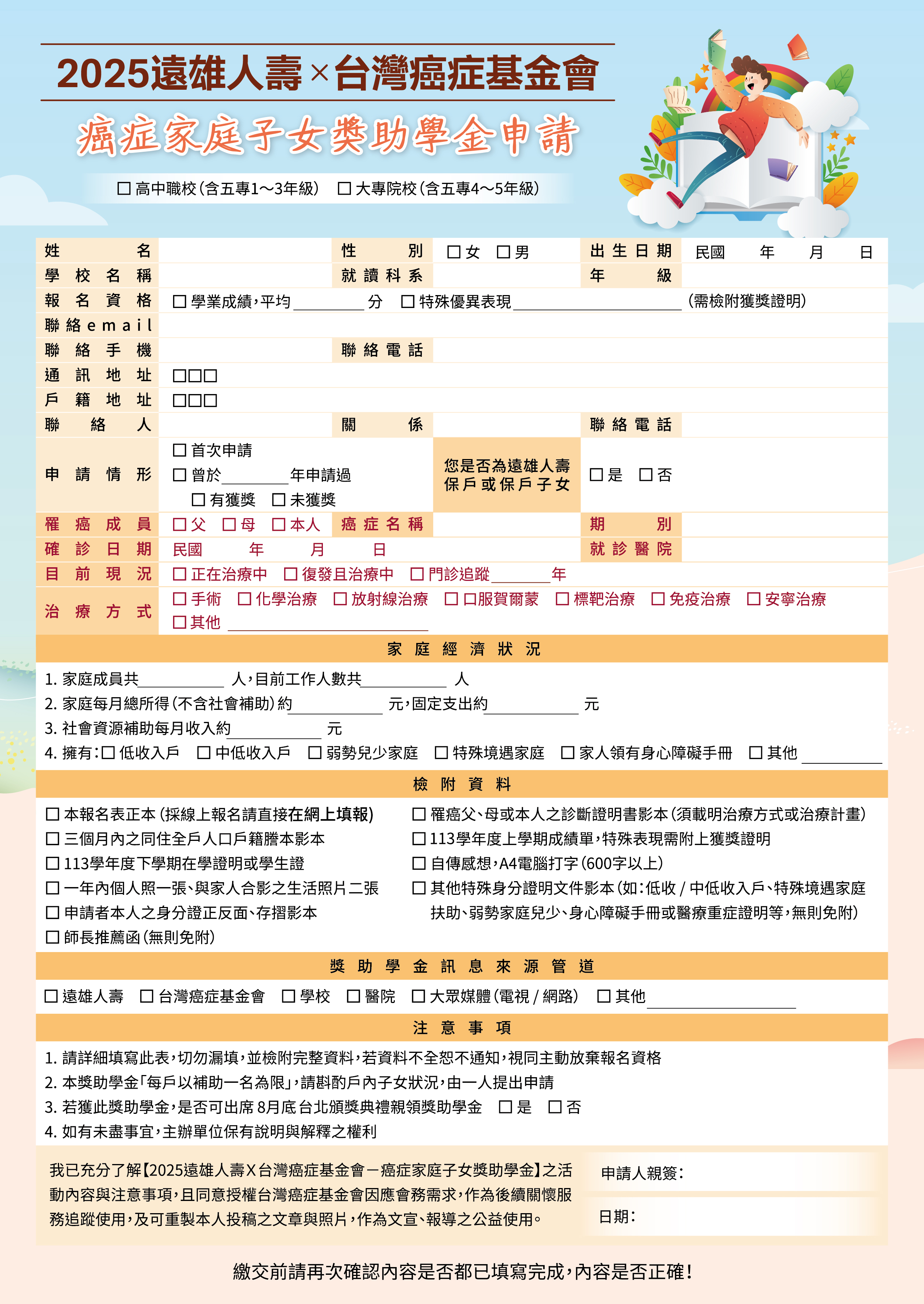 2025台灣癌症基金會x遠雄人壽- 癌症家庭子女獎助學金