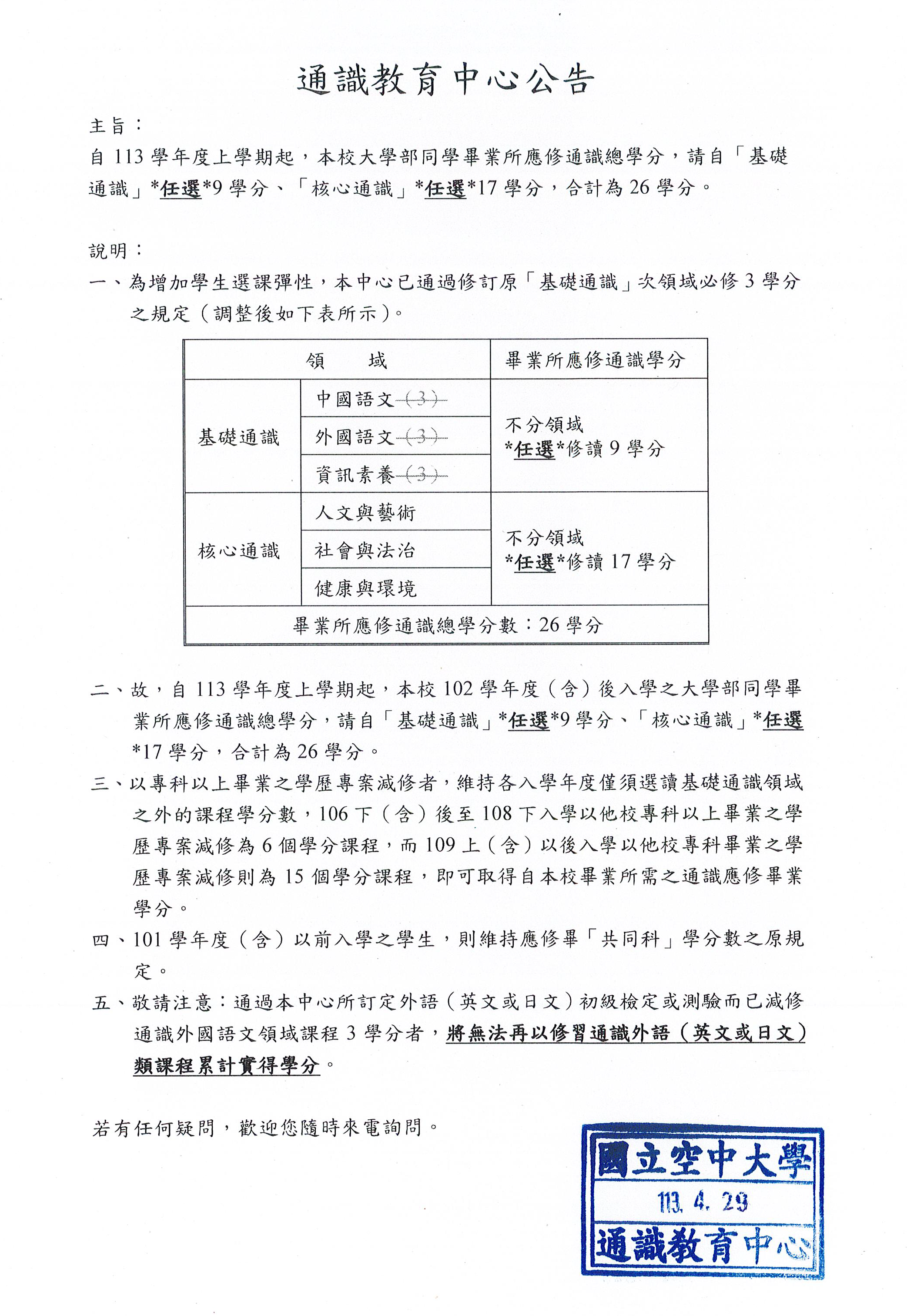 2025/05/19 人文學系114年度上學期起全面停開英語所有課程予學生周知