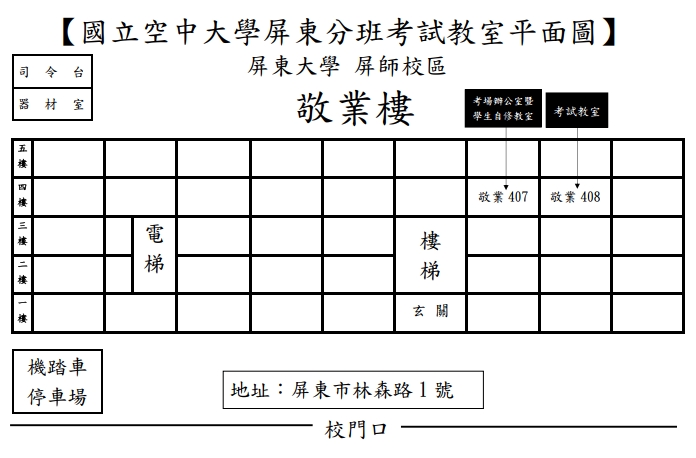 ➡️自修教室:敬業樓407教室