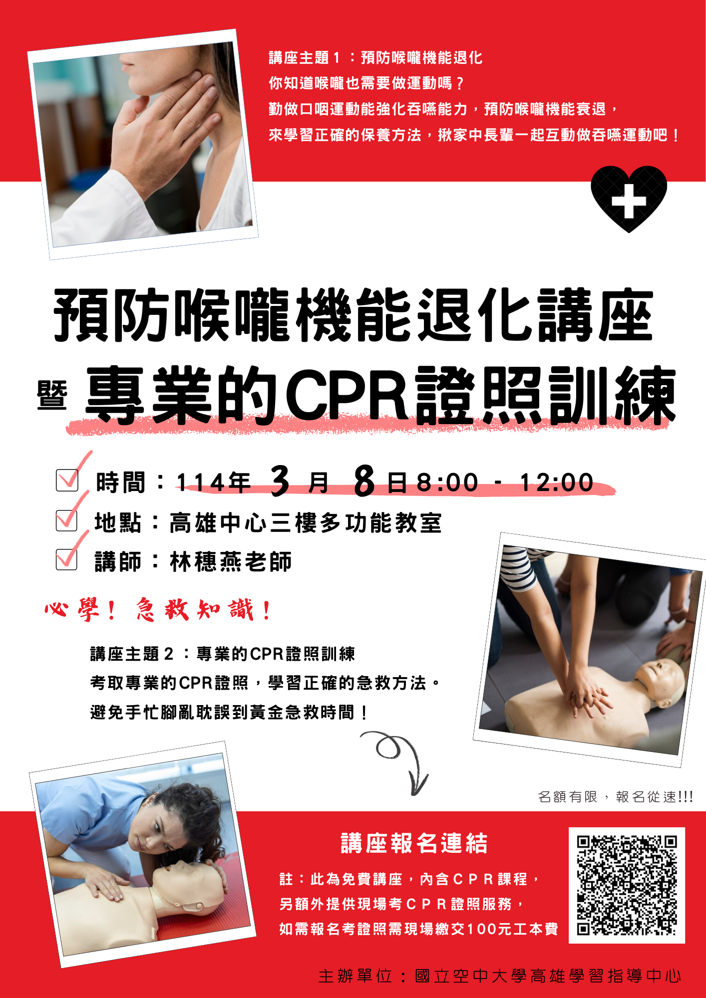 防喉嚨機能退化講座 暨 專業的CPR證照訓練講座