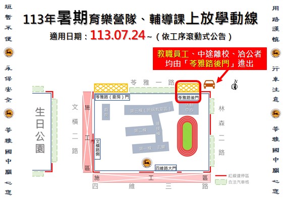 高雄考場:苓雅國中通學步道整修,同學進出請從苓雅路和林森路口