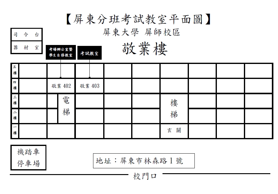 112下期末考「屏東」考場更改:國立屏東大學敬業樓403教室,詳細資訊請詳閱內文。