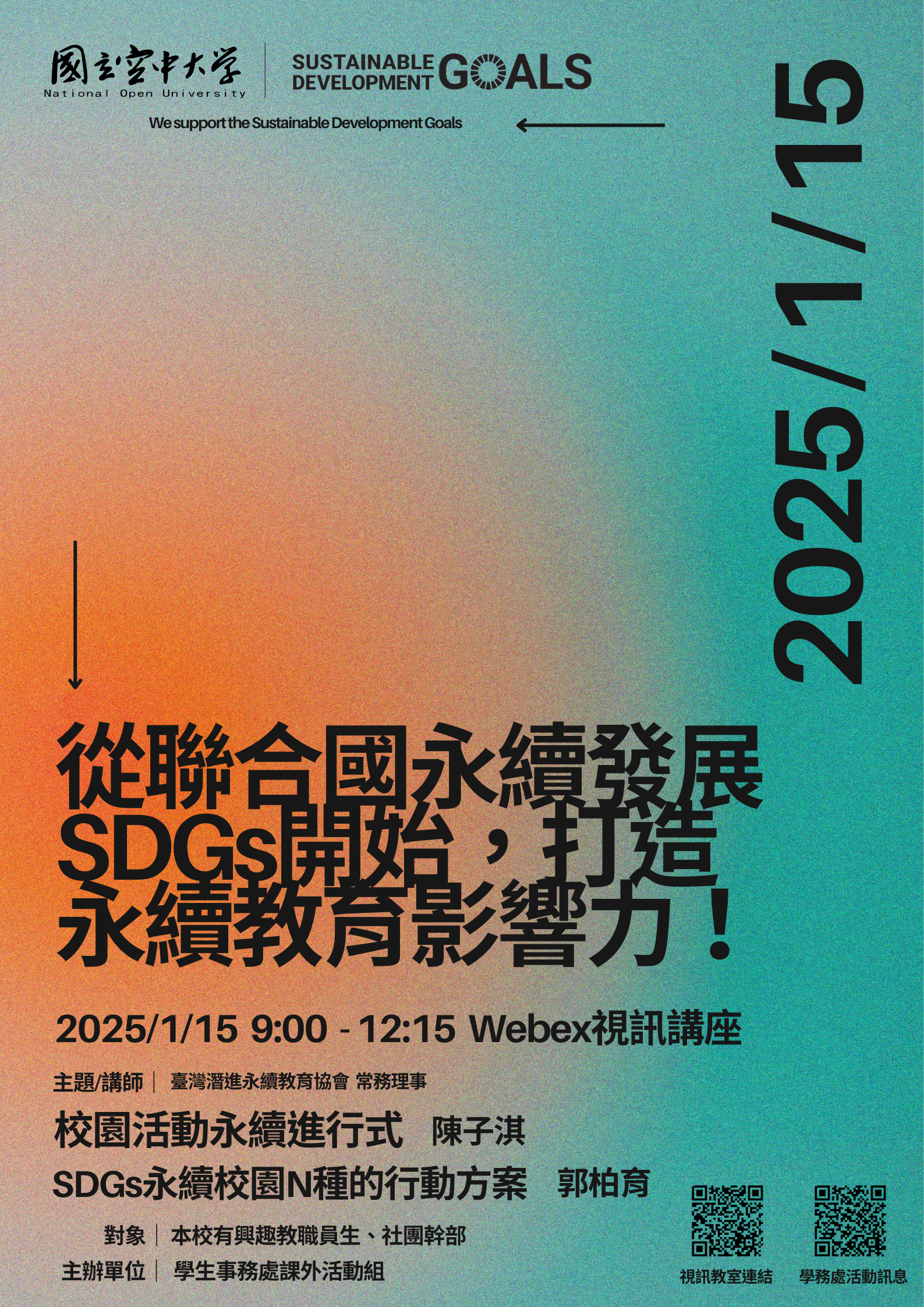 114年度「從聯合國永續發展SDGs開始,打造永續教育影響力!」視訊講座