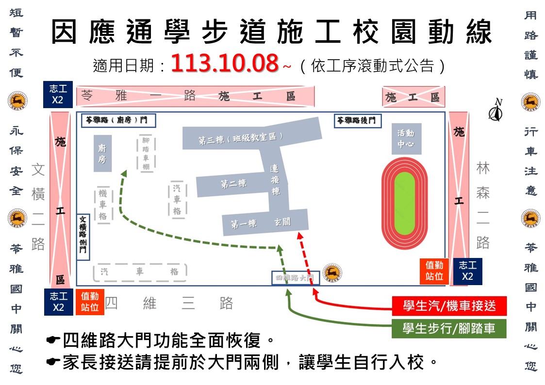 期中考高雄考場:苓雅國中通學步道整修中,同學進出請從四維三路大門口!